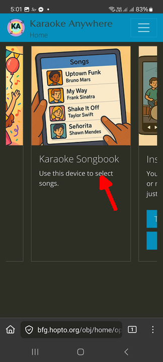 After logging in, you will see the Home Page. Click on "Karaoke Songbook".
