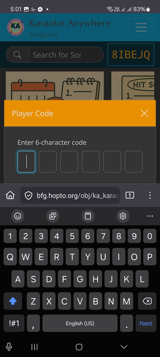 If you have already selected a player previously, click on the code at the top right to open a form where you can input a new code.